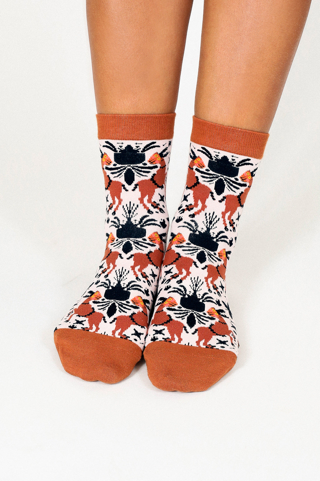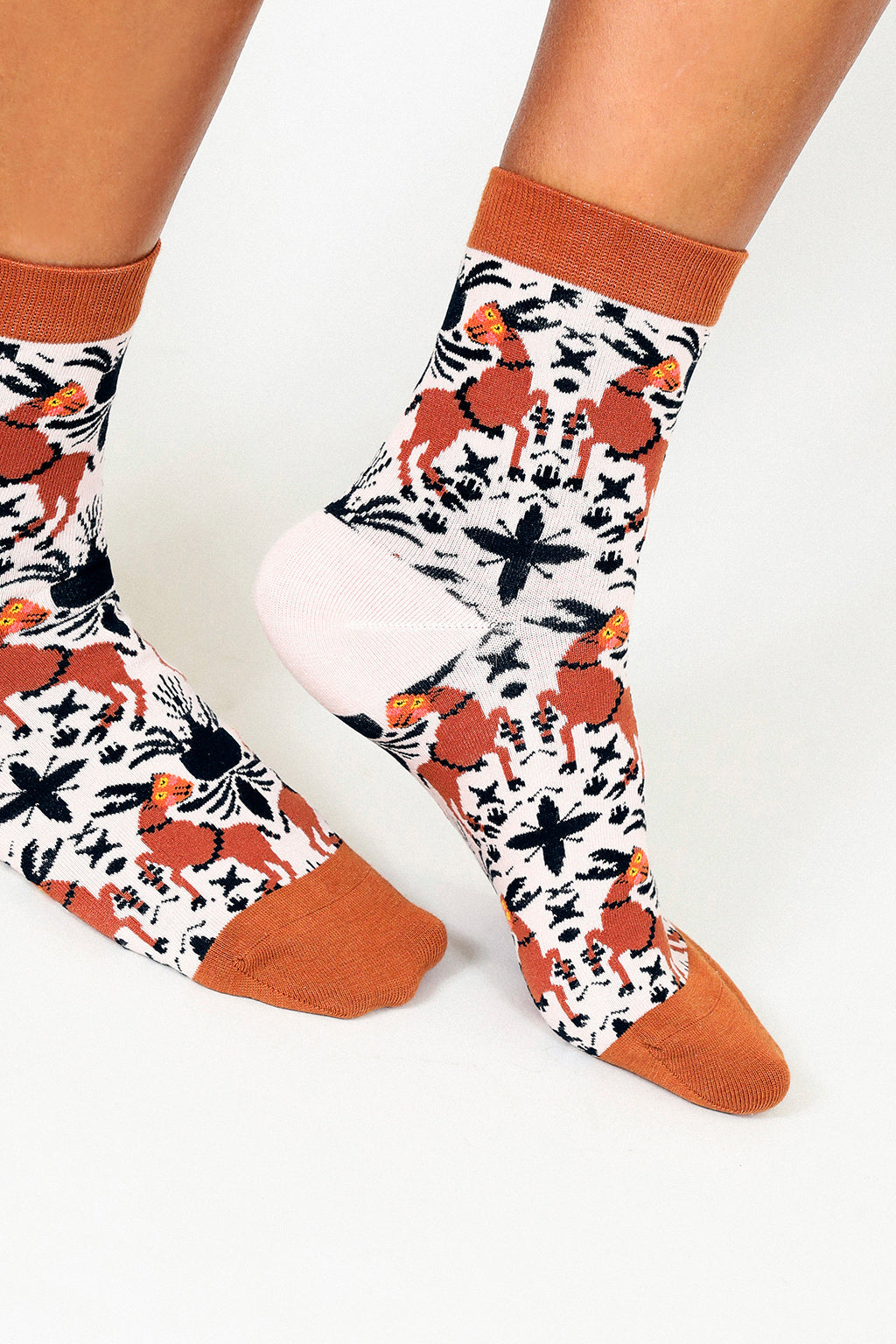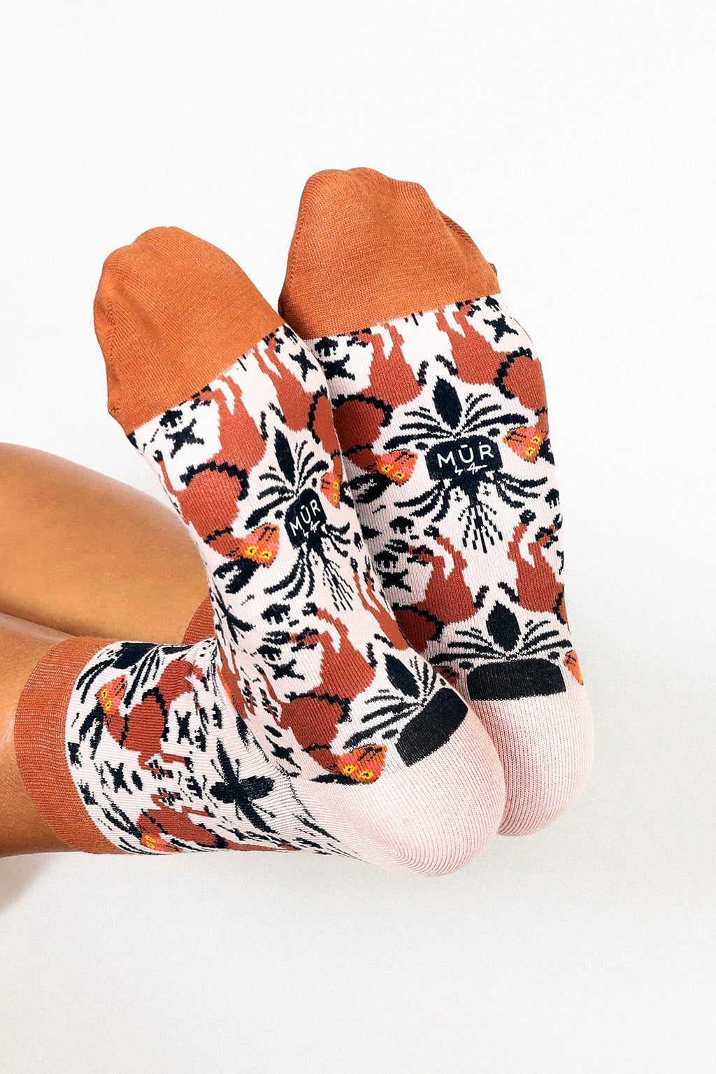 The MŪR by Ayca Deer sock is inspired by Celtic-Scandinavian art. The angular ornamentation and rows of dots are signature details in many of Ayca's illustrations.